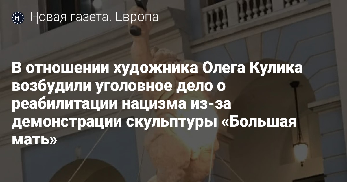 Следственный комитет возбудил уголовное дело по статье о реабилитации нацизма (статья 354, часть 3 УК) в отношении художника Олега Кулика, автора скульптуры «Большая мать». Об этом он сам рассказал изданию «Артгид».