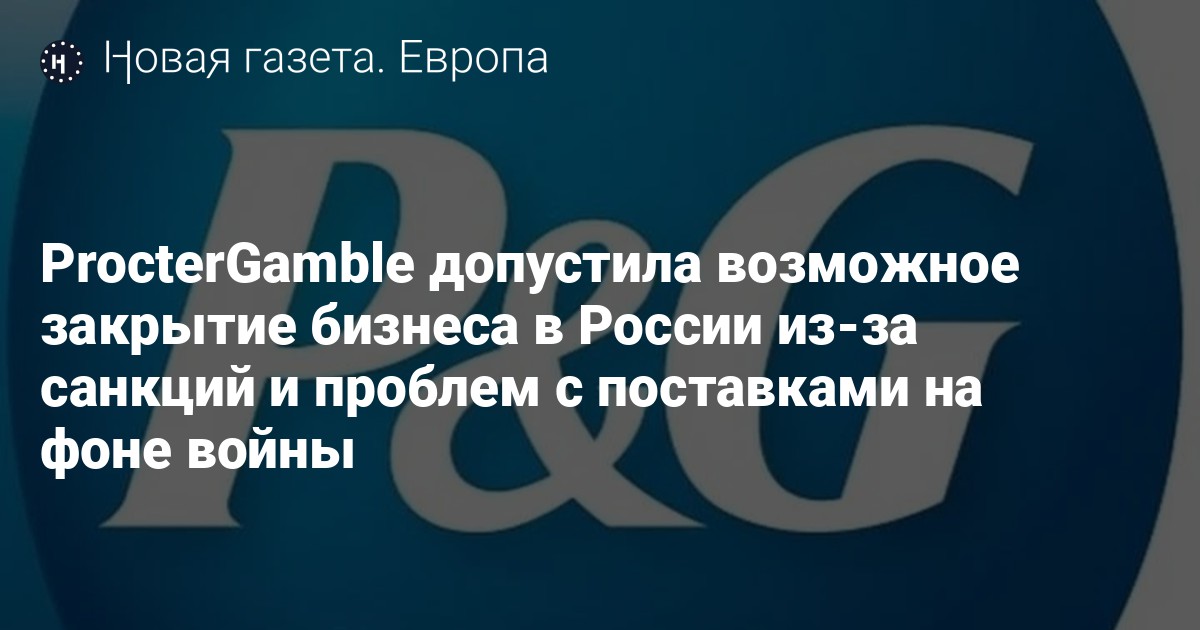 P&G, вероятно, не сможет продолжать работу в России из-за санкций, финансовых ограничений и проблем с поставками на фоне войны России с Украиной, заявили в компании.
