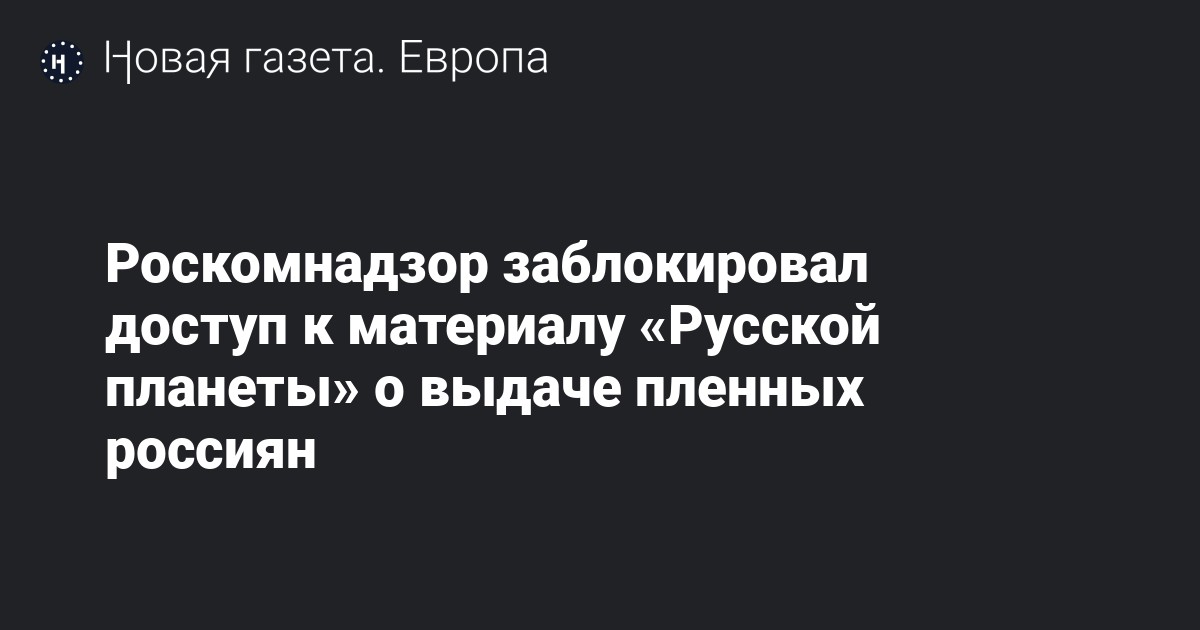 Роскомнадзор по решению Генпрокуратуры заблокировал доступ к материалу «Русской планеты» о выдаче пленных россиян. Об этом сообщает проект «Роскомсвобода».
