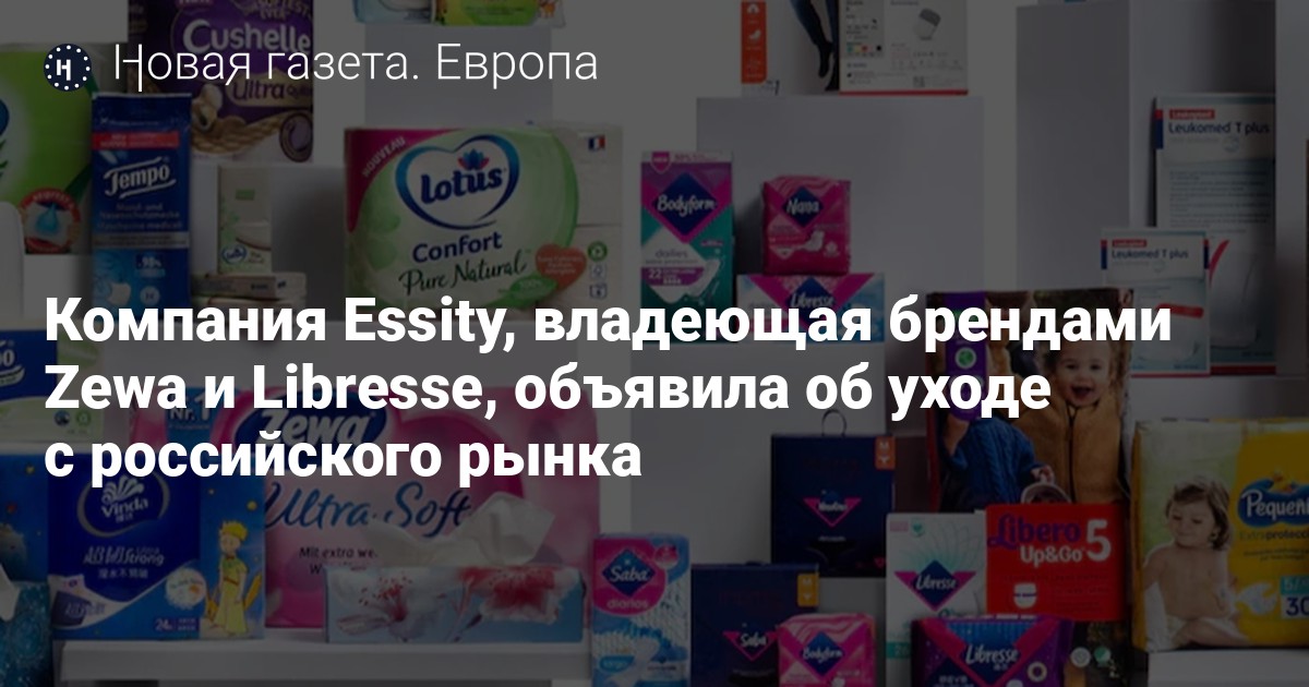 Шведский производитель товаров личной гигиены Essity, владеющий брендами Zewa, Tork, Libero, Libresse и TENA, объявил о начале работы по выходу с российского рынка. Об этом сообщается в пресс-релизе компании.