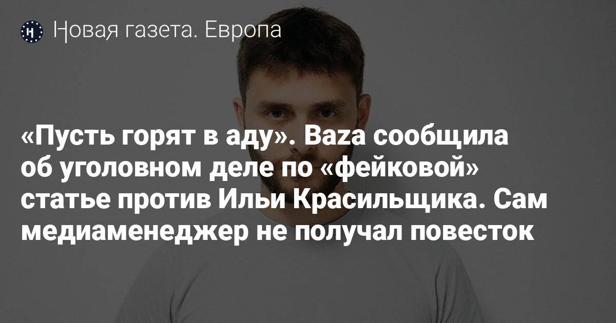 «Пусть горят в аду». Baza сообщила об уголовном деле по «фейковой» статье против Ильи Красильщика. Сам медиаменеджер не получал повесток