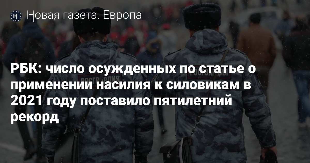 Как отмечает РБК, рекордным является и число осужденных за неопасное насилие к представителю власти: в 2020 году их было 5687 — это на 18% меньше, чем в прошлом году.