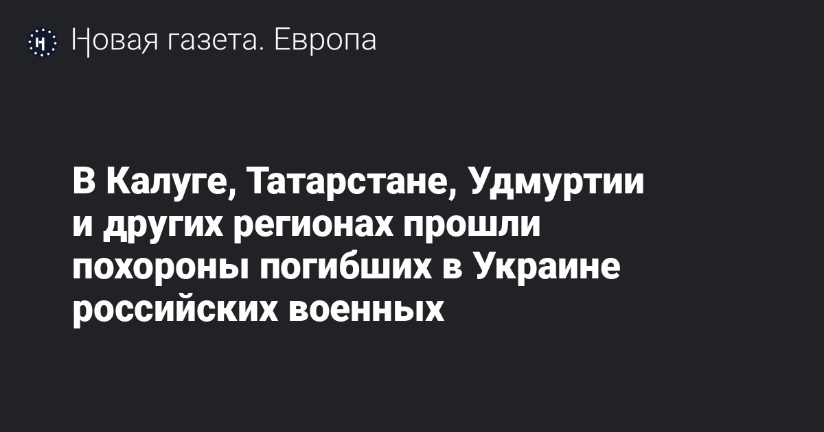 Власти десяти российских регионов сообщили о погибших в Украине российских военных. Их похороны, в частности, прошли в Калужской области, Татарстане, Удмуртии, отмечает РБК.