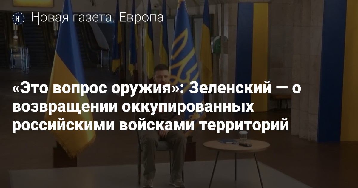 Президент Украины высказался в том числе о возможности возвращения территорий, которые оккупировали российские войска. «Моя позиция, как президента: все, что они оккупируют — мы все вернем. Это будет не вопрос 8 лет, как с 2014-го, это будет сразу. Это вопрос оружия. Если у нас его будет достаточно, мы начнем сразу возвращать оккупированные территории».