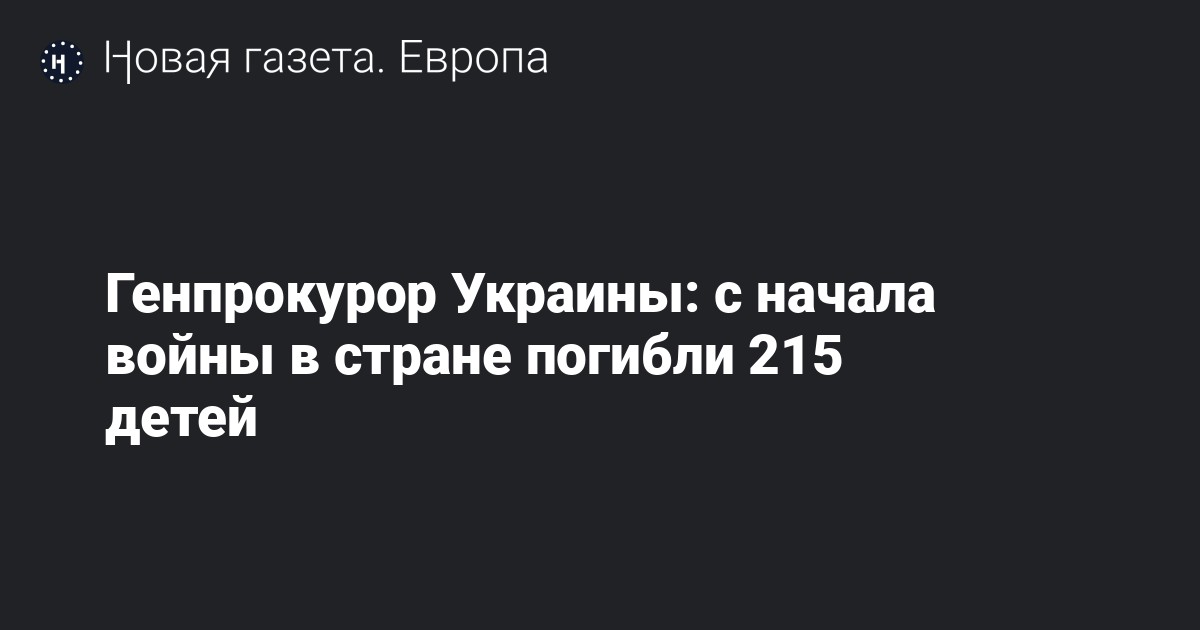 С начала войны в Украине погибли 215 детей, еще 391 ребенок получил ранения. Об этом сообщил офис генерального прокурора Украины.