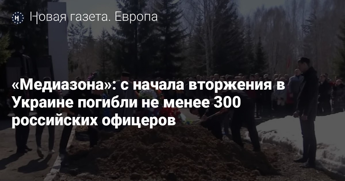 С 24 февраля в Украине погибли не менее 300 российских офицеров. К такому выводу пришли журналисты «Медиазоны», которые проанализировали сообщения, опубликованные в соцсетях, региональных СМИ и на сайтах госорганов.