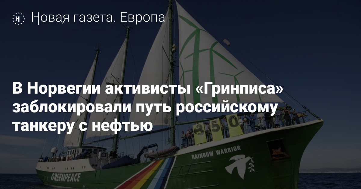 В Норвегии активисты международной организации по защите окружающей среды «Гринпис» заблокировали путь российскому танкеру с нефтью. Об этом сообщает Reuters.