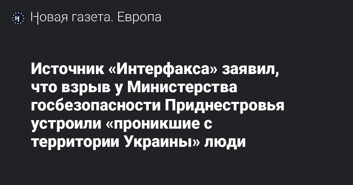 Источник «Интерфакса» заявил, что взрыв у Министерства госбезопасности Приднестровья устроили «проникшие с территории Украины» люди