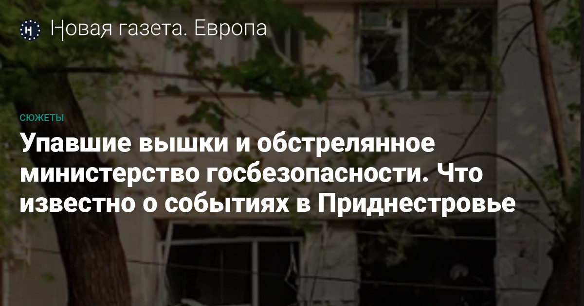 25 апреля в Тирасполе прогремели взрывы — под ударом оказалось здание местного министерства госбезопасности. Кто и зачем приехал с гранатометом в центр столицы Приднестровья, пока точно неизвестно. За взрывами последовала цепочка и других странных происшествий. «Новая газета. Европа» собрала все, что известно о последних событиях в непризнанном государстве, граничащем с охваченной войной Украиной.
