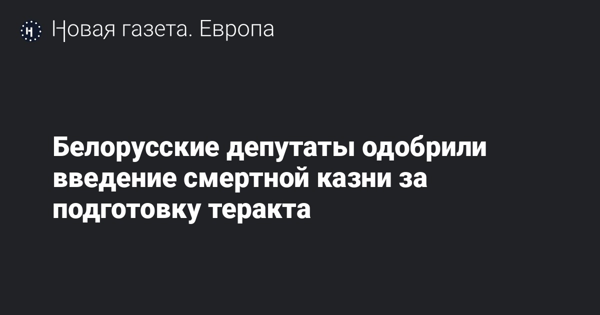 Нижняя палата белорусского парламента — Палата представителей Нацсобрания — одобрила поправки в Уголовный кодекс, предусматривающие введение смертной казни за покушение на теракт. Об этом говорится в телеграм-канале палаты.