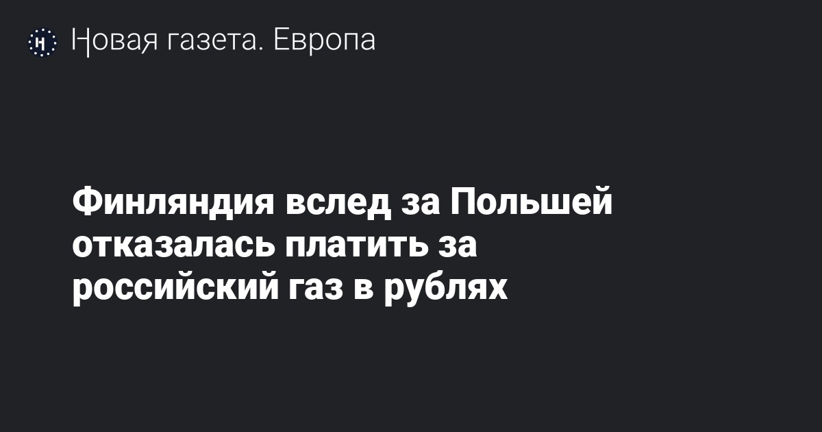 Финляндия решила не соглашаться с условиями России по оплате поставок газа в рублях. Об этом заявила министр по делам Европы и управления собственностью Тютти Туппурайнен.