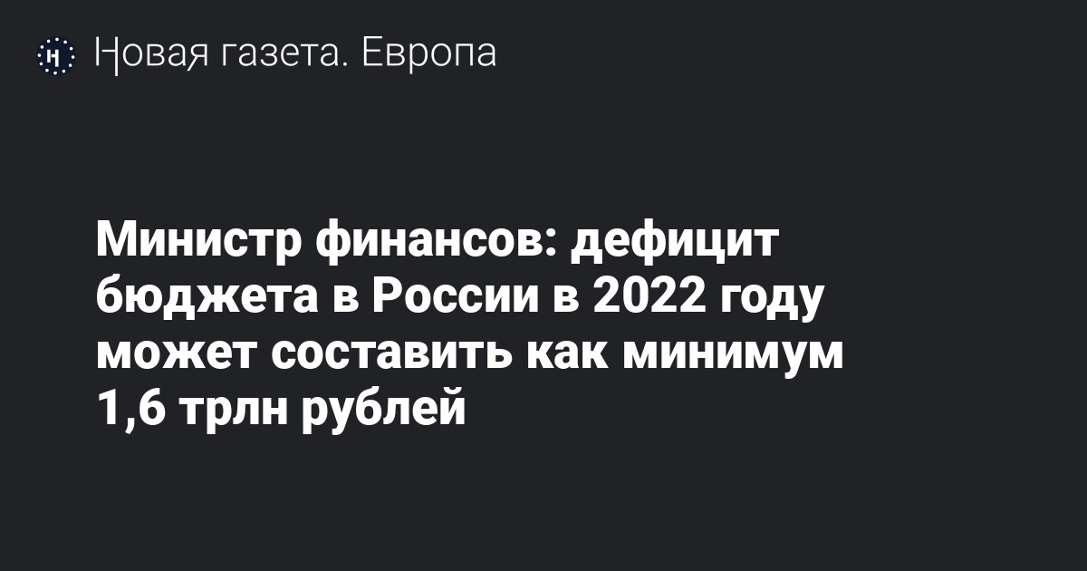 Дефицит бюджета России на 2022 год, по предварительной оценке, составит 1,6 трлн рублей, сказал министр финансов Антон Силуанов. Его слова приводит «Интерфакс».