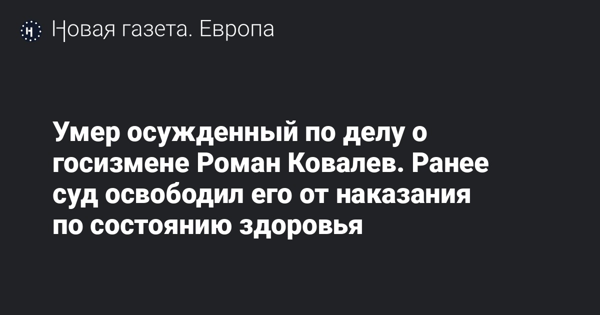 Две недели назад, 12 апреля, суд освободил Ковалева от наказания из-за болезни — у мужчины был рак четвертой стадии. В июле 2020 года мужчину приговорили к семи годам колонии строго режима.