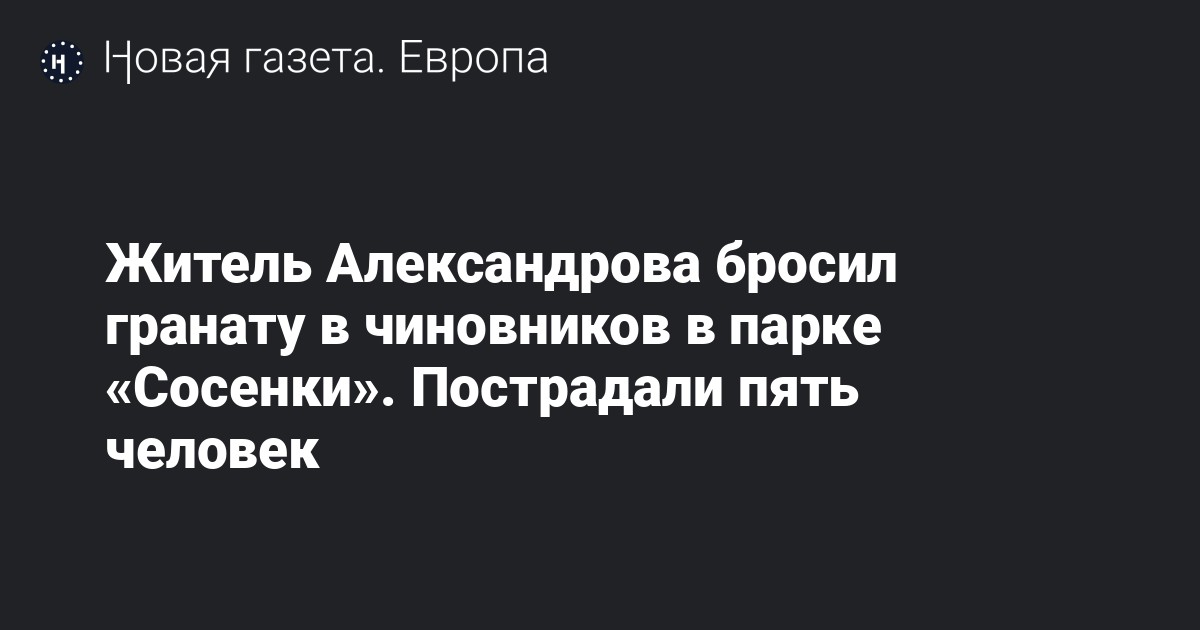 В городе Александров Владимирской области 38-летний мужчина бросил гранату в сотрудников районной администрации и представителей фирмы-подрядчика, которые проверяли ход работ по благоустройству парка «Сосенки». Об этом, как заметила «Медиазона», сообщается на сайте областной администрации.