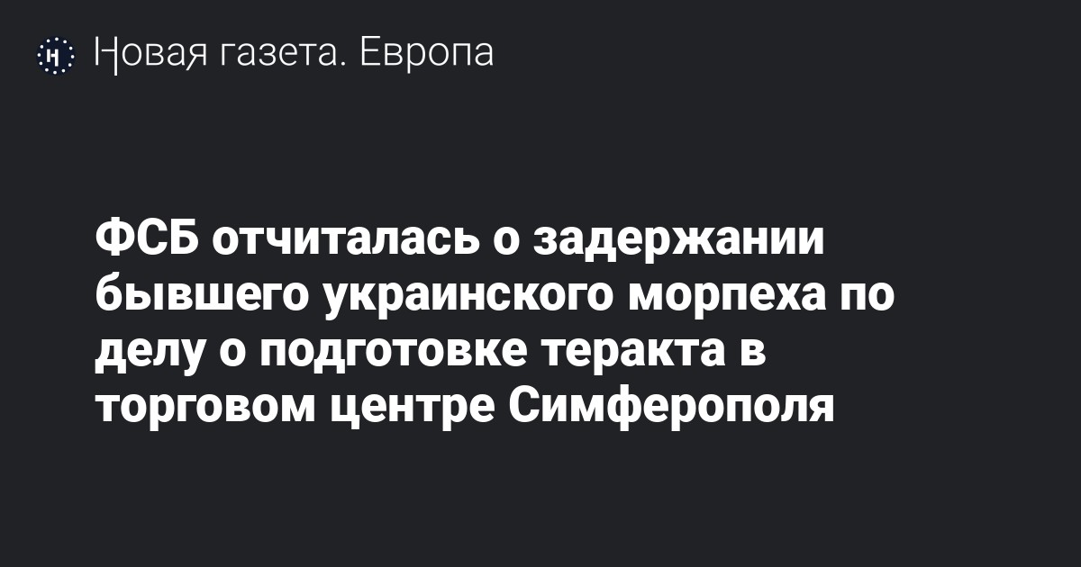 Федеральная служба безопасности (ФСБ) отчиталась о задержании в Крыму бывшего украинского морпеха 1988 года рождения, который, как утверждают силовики, готовил теракт в торговом центре Симферополя. Об этом сообщает РИА Новости со ссылкой на Центр общественных связей (ЦОС) ФСБ.