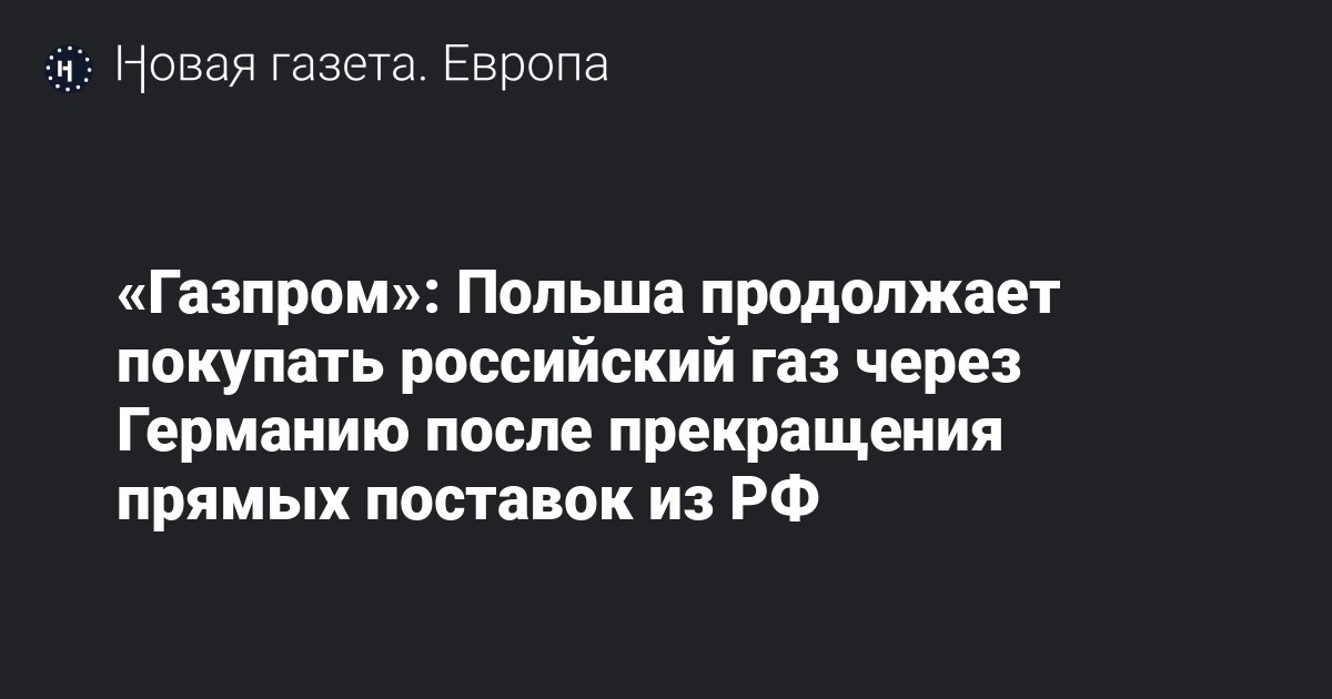 «После приостановки прямых поставок Польша покупает российский газ. Но теперь в Германии, откуда он реверсом поступает в Польшу по газопроводу „Ямал-Европа“. Объем реверса — около 30 млн куб. м в сутки — почти точно соответствует заявкам по контракту с „Газпром экспортом“ в предыдущие дни», — заявил официальный представитель концерна Сергей Куприянов.