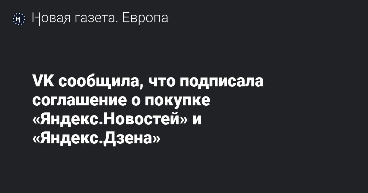 VK Company Limited сообщила, что подписала соглашения об основных условиях сделки с Яндексом о покупке информационных сервисов «Яндекс.Дзен» и «Яндекс.Новости». Об этом сообщает пресс-служба соцсети.