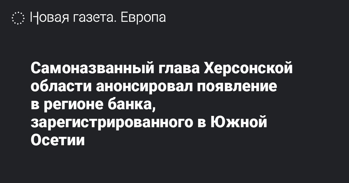 «Назначенный» на должность главы Херсонской областной администрации Владимир Сальдо сообщил о скором появлении в регионе Международного расчетного банка, зарегистрированного в Южной Осетии. Его слова цитирует ТАСС.