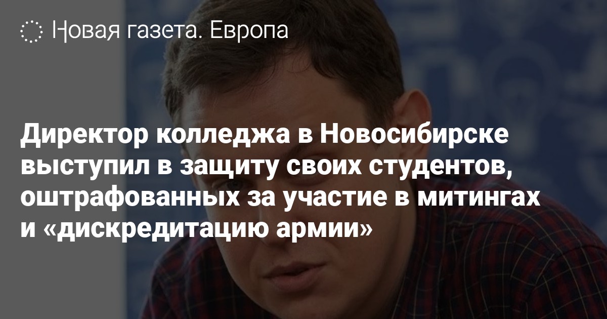 «Простым языком: за то, что просто вышел на улицу, тариф — 15 тысяч. За то, что вышел с плакатом "Нет войне", — 30 тысяч. Просят провести воспитательную работу, повысить уровень патриотизма и впредь не допускать их незаконных действий», — рассказал директор колледжа.