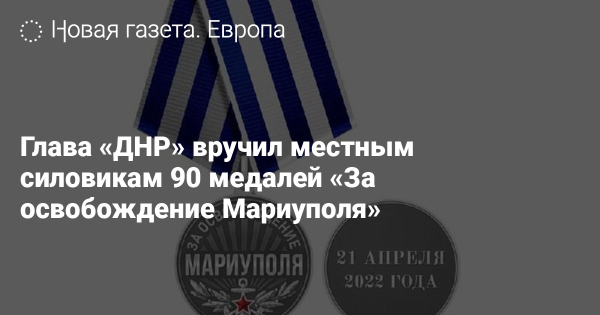 Медаль «За освобождение Мариуполя» учредили совсем недавно — 26 апреля Пушилин представил проект награды.