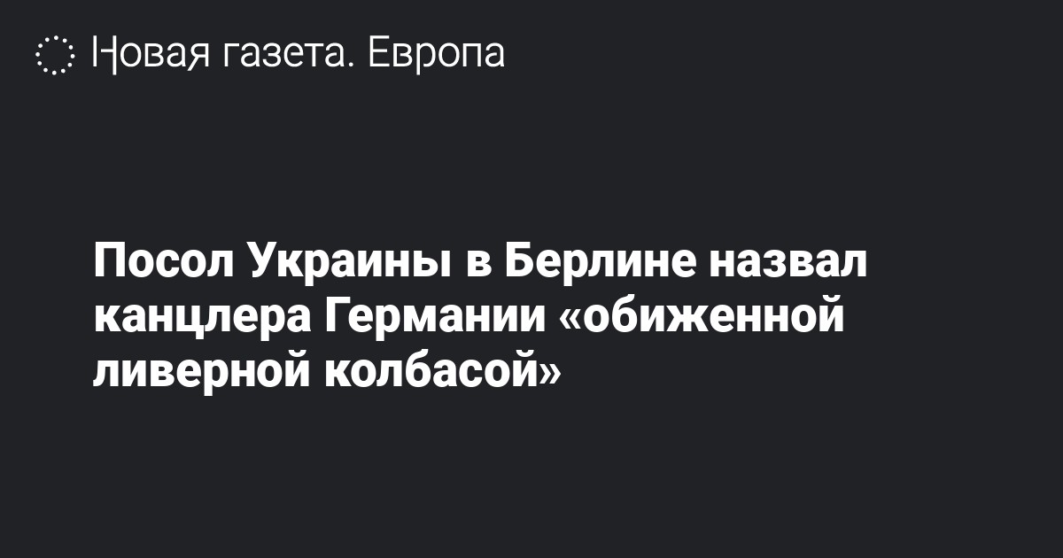 Посол Украины в Берлине Андрей Мельник назвал канцлера Германии Олафа Шольца «обиженной ливерной колбасой» за то, что он не поехал в Киев после отказа украинских властей принять федерального президента Франка-Вальтера Штайнмайера. Об этом сообщает Spiegel.
