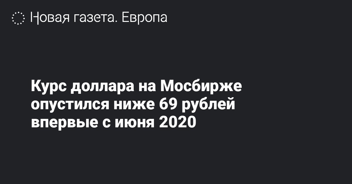 Курс доллара на Мосбирже опустился ниже 69 рублей впервые с июня 2020, свидетельствуют данные торгов.
