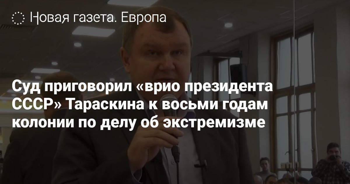Зеленоградский суд города Москвы приговорил основателя движения «граждане СССР» Сергея Тараскина к восьми годам колонии по уголовному делу о создании экстремистской организации (ч. 1 ст. 282.2 УК). Об этом сообщает ТАСС со ссылкой на пресс-службу суда.