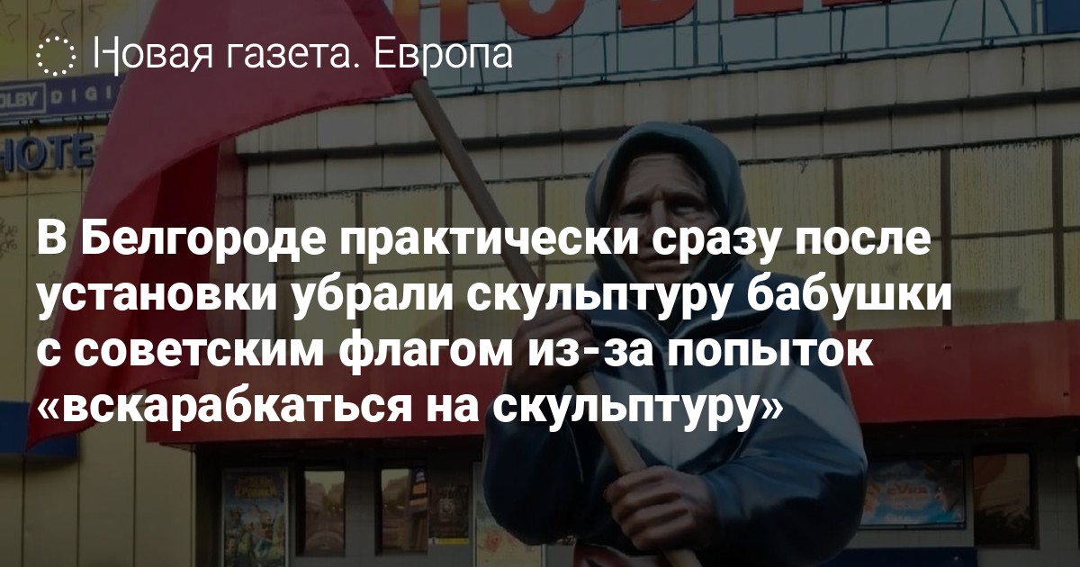 В Белгороде практически сразу после установки пришлось убрать скульптуру бабушки с советским флагом у кинотеатра Победа и искать для нее другое место размещения, заявил мэр города Антон Иванов.