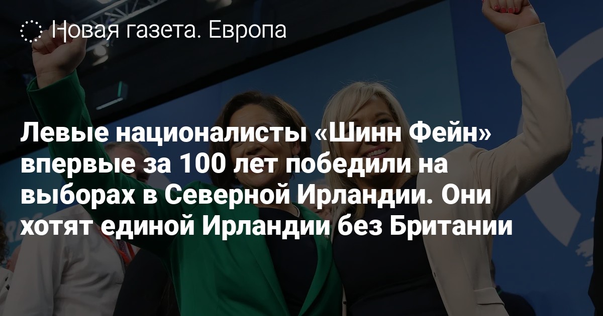 Левая националистическая партия «Шинн Фейн» (ир. — «Мы сами»), выступающая за единую Ирландию, впервые в истории получила большинство мест в парламенте Северной Ирландии, сообщает «Би-би-си».