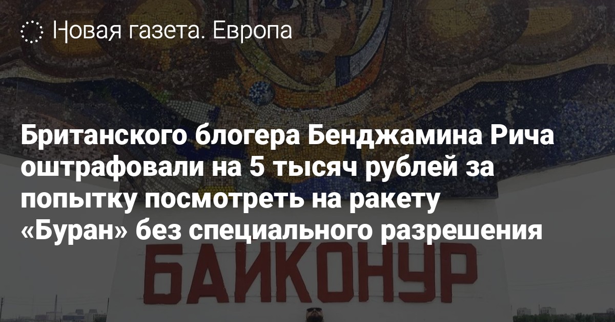 Британского блогера Бенджамина Рича оштрафовали на 5 тысяч рублей за попытку посмотреть на ракету «Буран» без специального разрешения