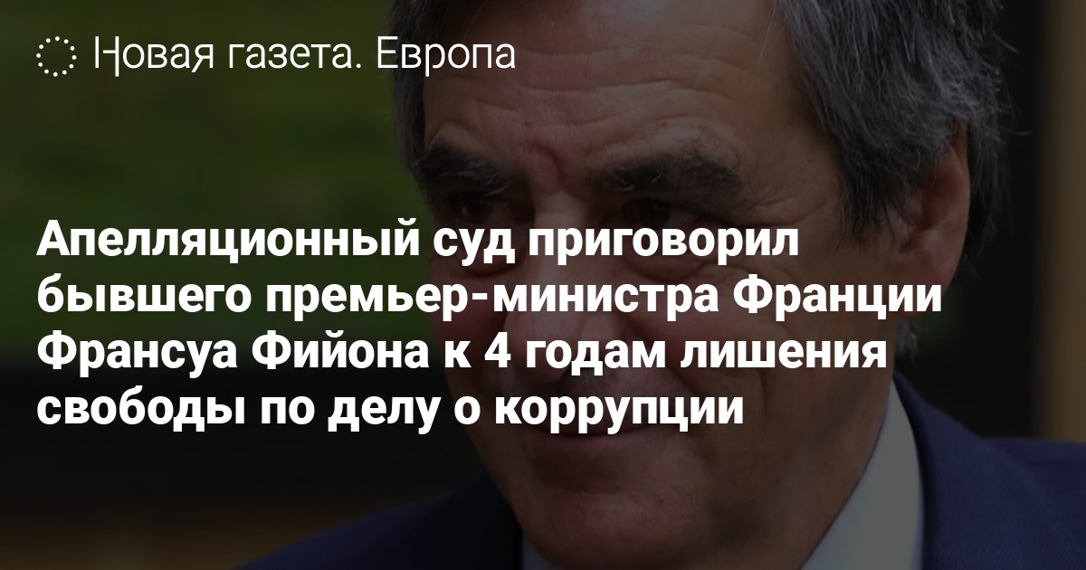Апелляционный суд Парижа приговорил бывшего премьер-министра Франции Франсуа Фийона к четырем годам лишения свободы, признав его виновным в создании фиктивных рабочих мест во французском парламенте. Об этом сообщает Le Monde.