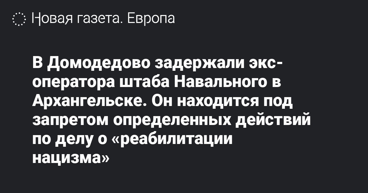 В московском аэропорту Домодедово задержали экс-оператора штаба Навального в Архангельске Руслана Ахметшина, находящегося под запретом определенных действий по делу о «реабилитации нацизма». Об этом сообщает «Север.Реалии».