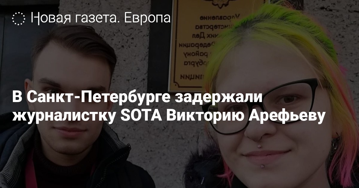 В Санкт-Петербурге полиция задержала «до выяснения обстоятельств» журналистку SOTA и редактора телеграм-канала «ПЬЯTNIЦА» Викторию Арефьеву. Об этом сообщается в телеграм-канале SOTA.