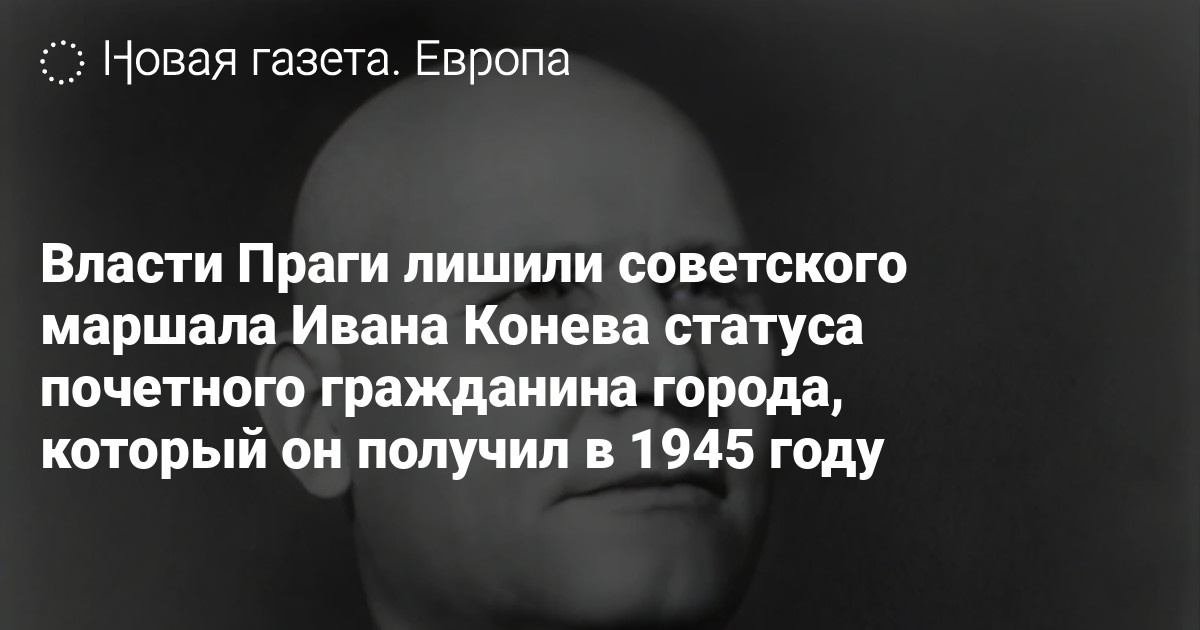 Руководство мэрии Праги лишило маршала Советского Союза Ивана Конева статуса почетного гражданина чешской столицы, которым он был с 6 июня 1945 года. Об этом сообщает издание «České noviny».