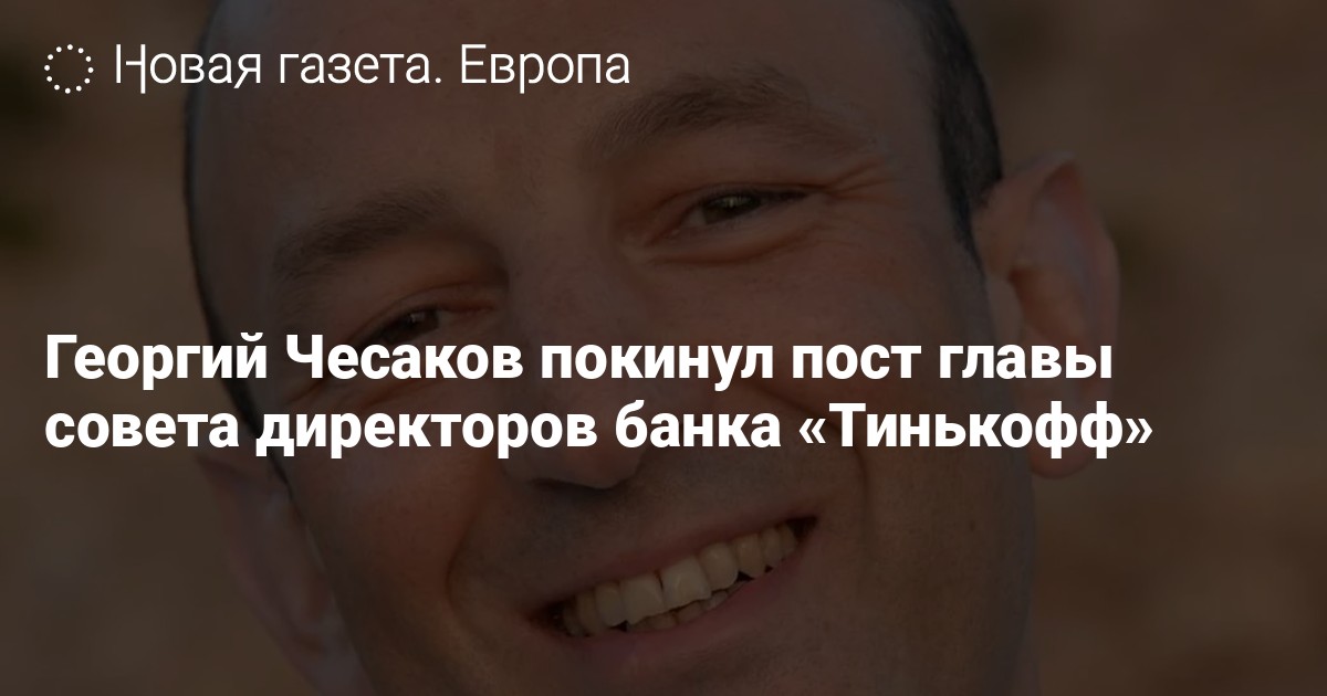 «"Тинькофф банк", ведущий поставщик онлайн-финансовых и лайфстайл-услуг, объявляет об уходе Георгия Чесакова из советов директоров "Тинькофф банка" и "Тинькофф страхования"», — говорится в сообщении.