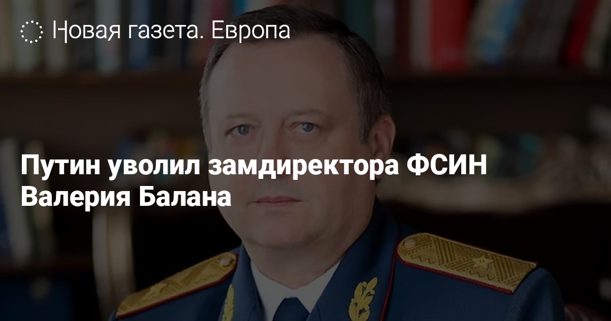Президент России Владимир Путин подписал указ об освобождении генерал-лейтенанта Валерия Балана от должности замдиректора Федеральной службы исполнения наказаний (ФСИН). Документ опубликован на официальном портале правовой информации.