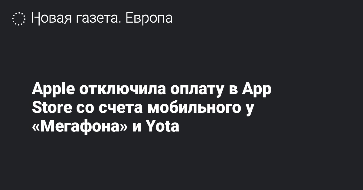 Компания Apple перестала принимать оплату за подписки и приложения в App Store со счета мобильного у операторов «Мегафон» и Yota.