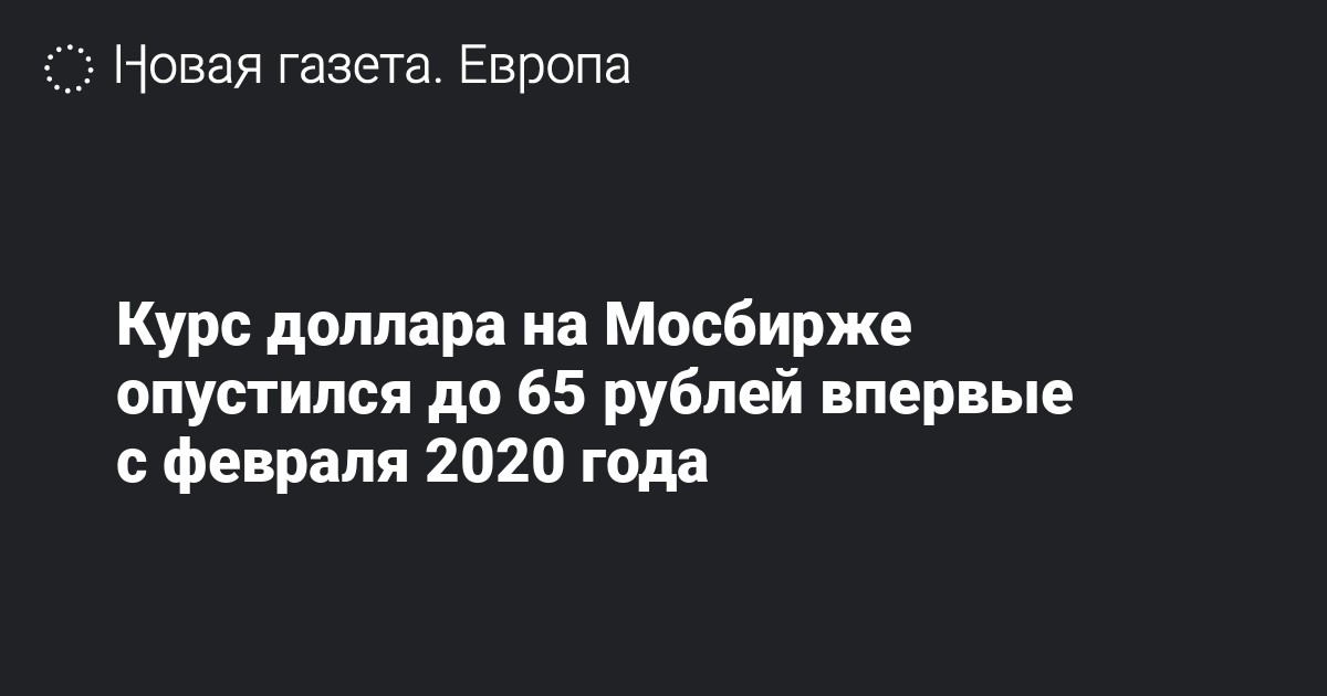 Курс доллара на Мосбирже опустился до 65 рублей впервые с февраля 2020 года, свидетельствуют данные торгов.