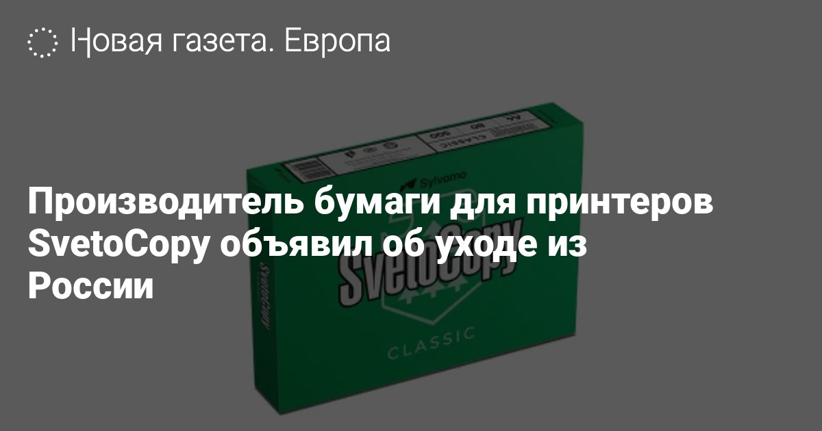 Американская компания Sylvamo, которая производит бумагу для принтеров SvetoCopy, объявила об уходе с российского рынка. Об этом говорится в финансовом отчете компании за I квартал 2022 года.
