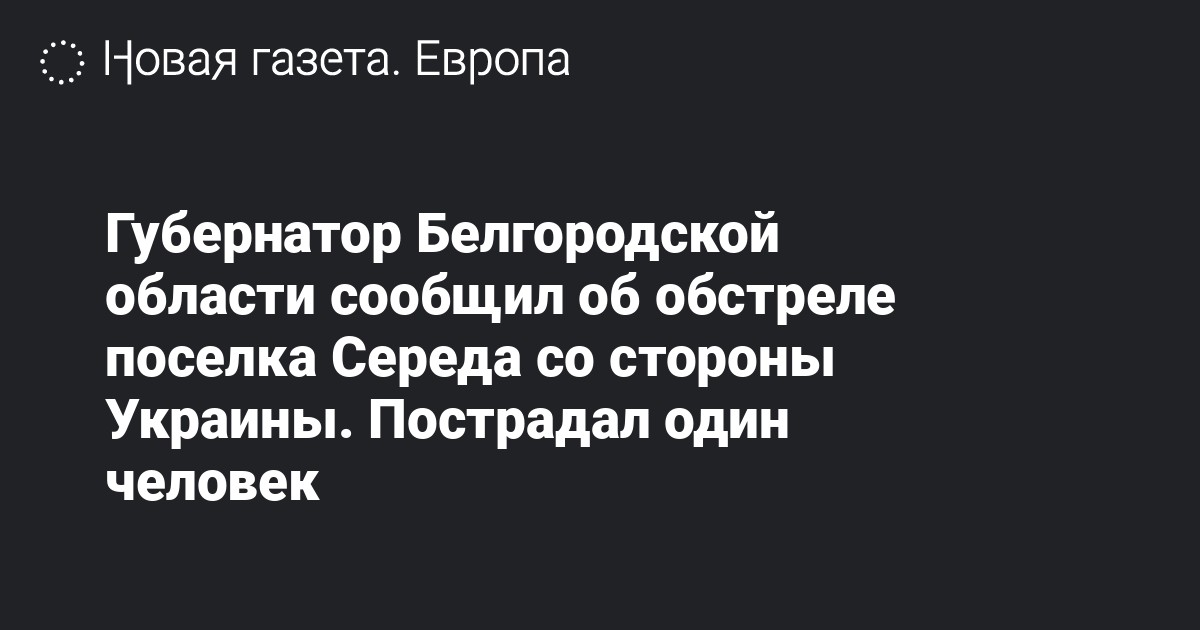 Губернатор Белгородской области сообщил об обстреле поселка Середа со стороны Украины. Пострадал один человек