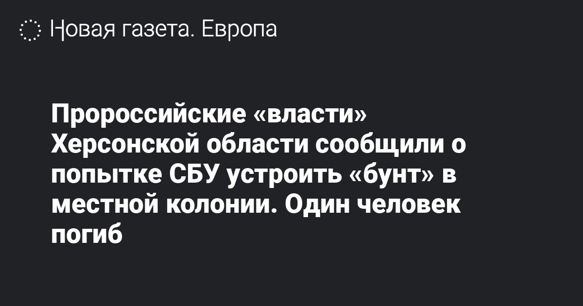 Пророссийские «власти» Херсонской области утверждают, что российские военные пресекли организованный Службой безопасности Украины (СБУ) «бунт» в колонии Херсона. Об этом сообщает ТАСС со ссылкой на Кирилла Стремоусова, которого госСМИ называют «заместителем главы Херсонской области».