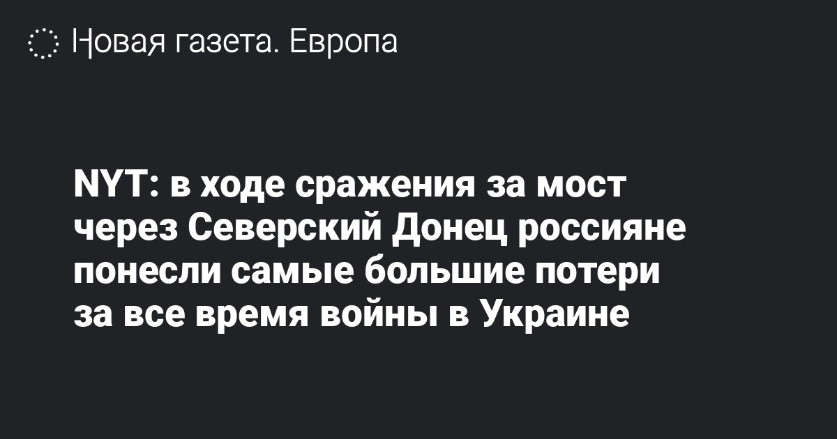 При попытке форсировать реку Северский Донец в Луганской области российская армия потеряла более 400 военнослужащих, пишет The New York Times со ссылкой на данные Института исследования войны (ISW).