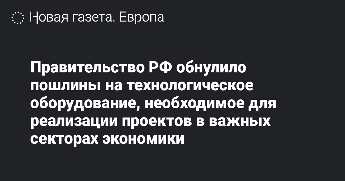 Правительство РФ обнулило пошлины на технологическое оборудование, необходимое для реализации проектов в важных секторах экономики