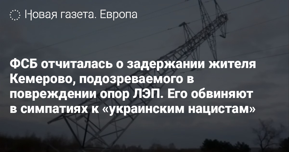 ФСБ отчиталась о задержании в Кемерово россиянина, причастного, по версии силовиков, к повреждению двух опор линий электропередач (ЛЭП). Об этом сообщает агентство РИА Новости.