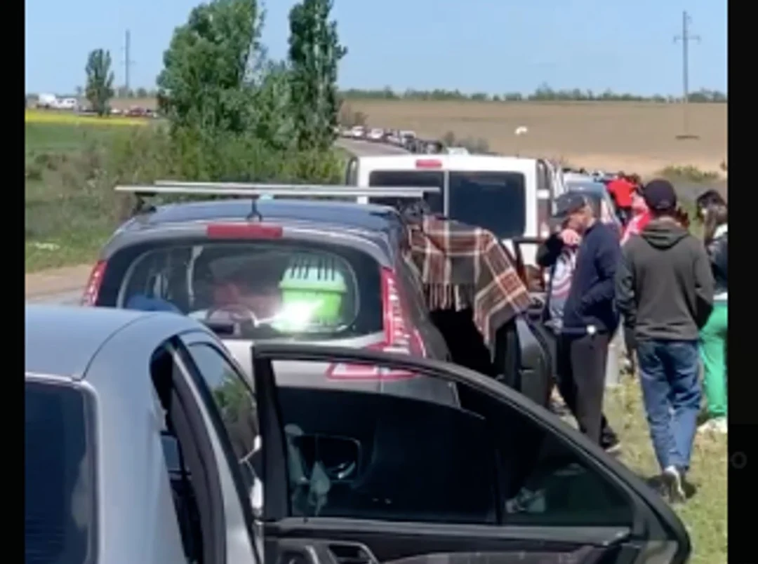 Колонна из желающих выехать с оккупированной территории у блокпоста в Бериславе на сегодня стоит седьмые сутки. В очереди около тысячи машин.