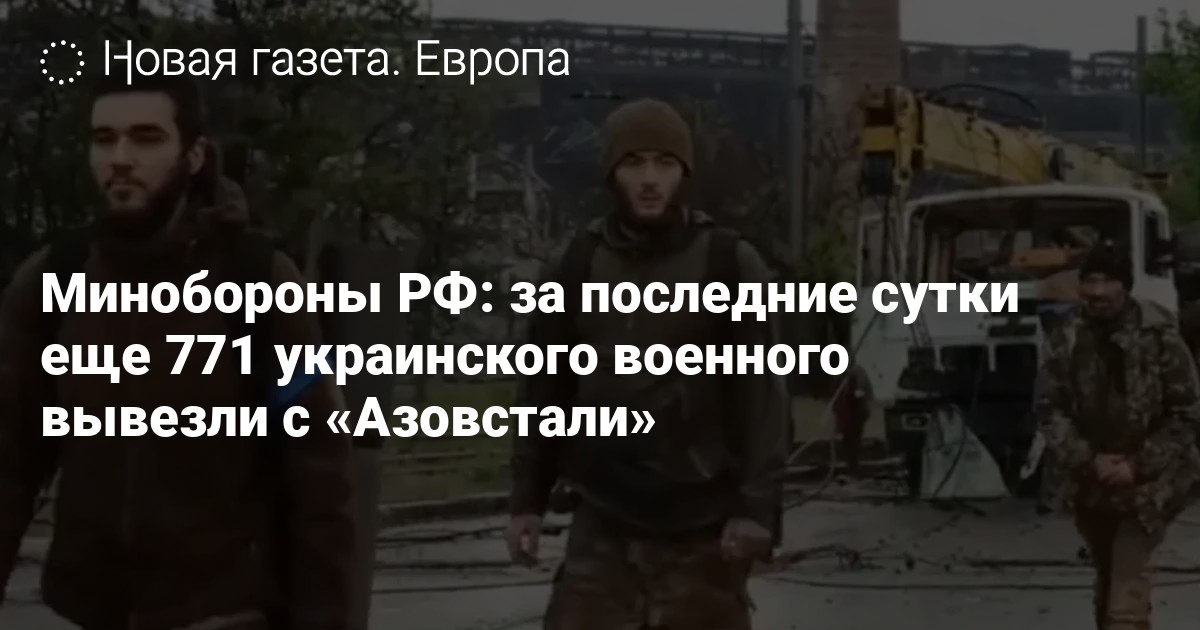 Всего с 16 марта с «Азовстали» вывезли 1730 военных, среди них есть раненые. В минобороны утверждают, что нуждающиеся в стационарном лечении получают помощь в больницах в Новоазовске и Донецке.