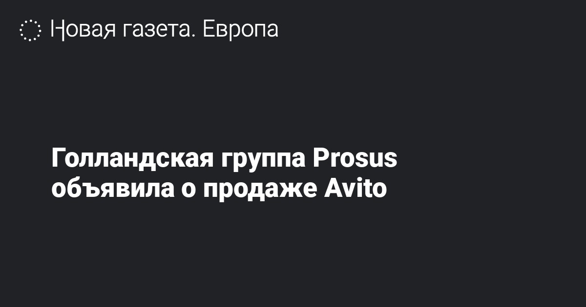 Голландская группа Prosus, которая является главным акционером сервиса онлайн-объявлений Avito, объявила об уходе из России. Об этом сообщается на сайте группы.