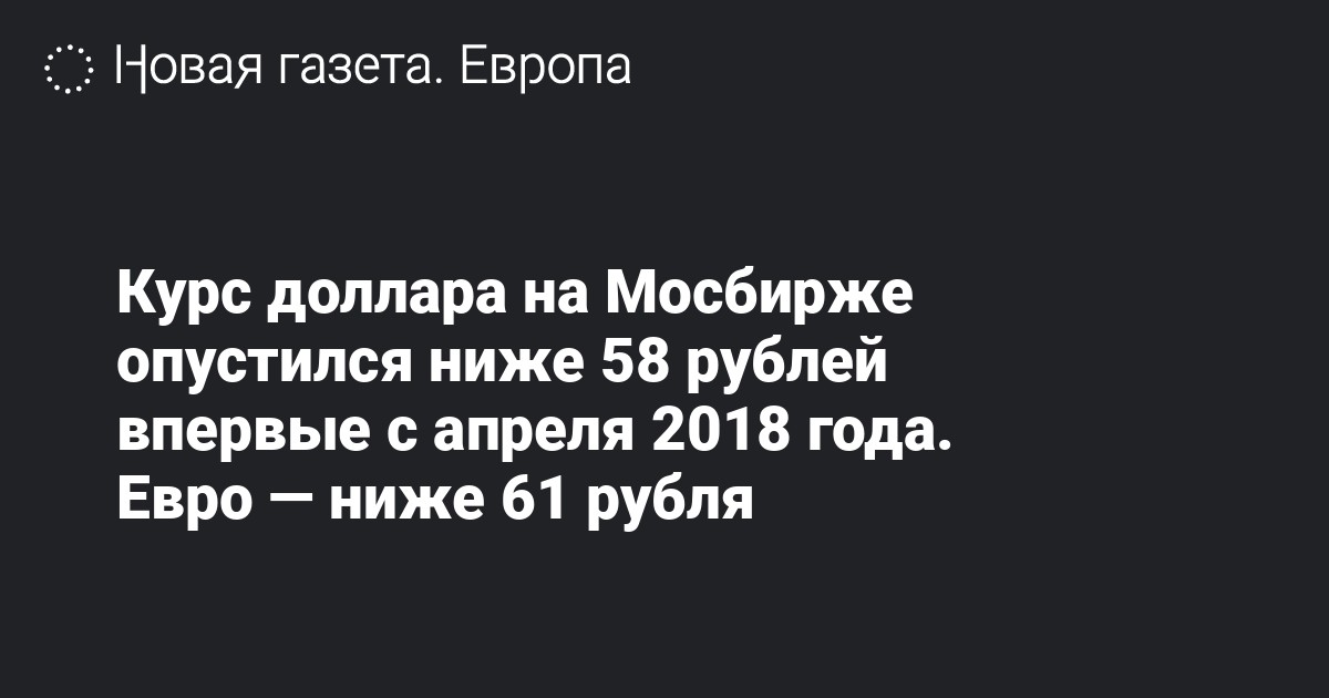 Курс доллара на Мосбирже опустился ниже 58 рублей впервые с апреля 2018 года, евро упал ниже 61 рубля впервые с апреля 2017-го. Об этом свидетельствуют данные торгов.