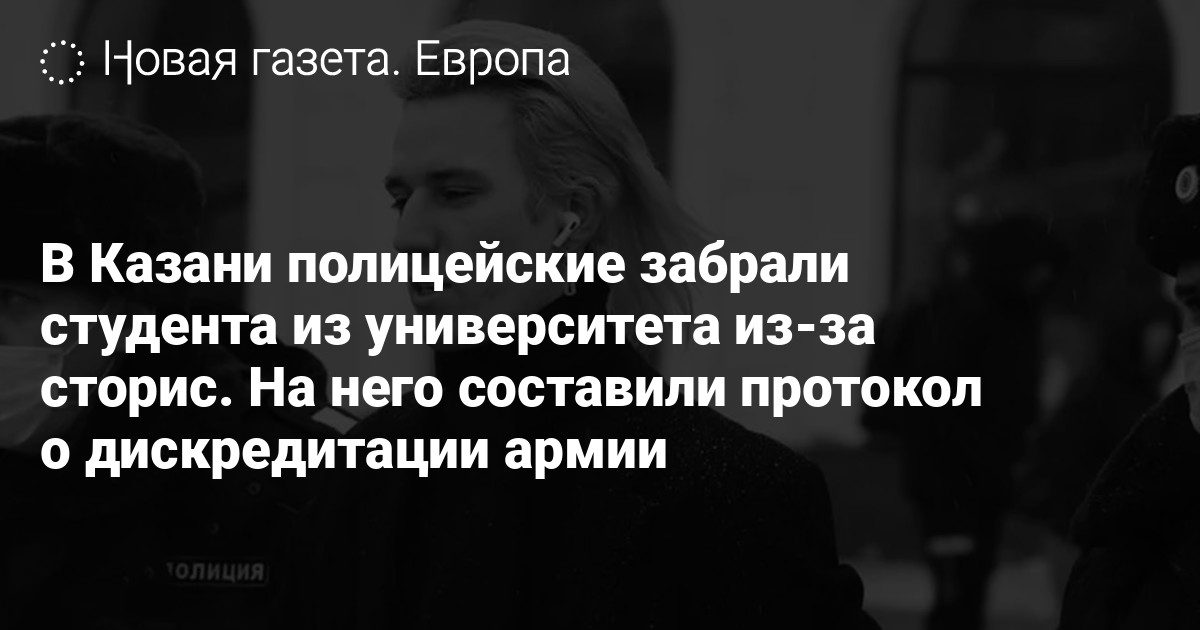 В Казани полицейские забрали из университета студента Дениса Мокрушина и составили на него протокол о дискредитации армии (ст. 20.3.3 КоАП). Об этом сообщает правозащитный проект «Апология».