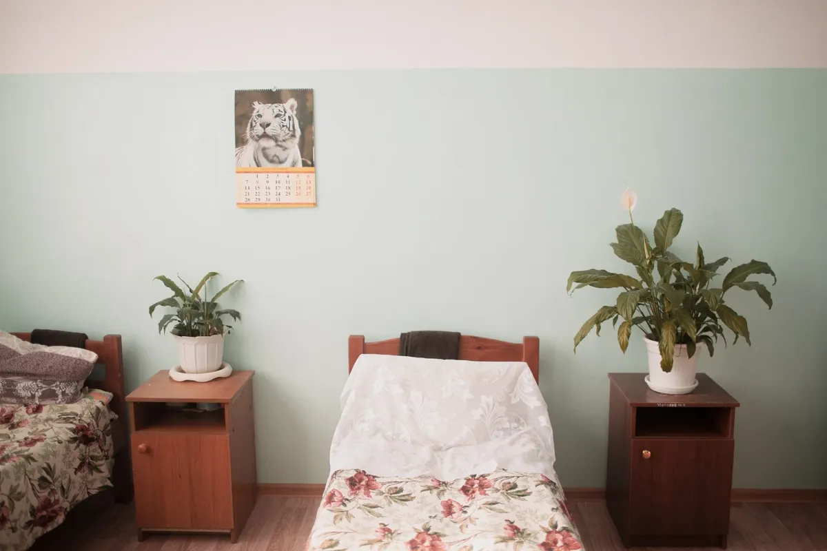 Душа и туалета в комнатке для свиданий нет, но они примыкают к отсеку с ней. Ключ — у главной медсестры: хочешь заняться сексом, берешь. Очереди нет, пары договариваются между собой, сами же меняют постельное белье. Окружающие к этому относятся спокойно, пальцем не тычут и, наверное, не завидуют: кому очень хочется, найдут себе пару и в ПНИ, несмотря на то, что конкретно в этом интернате на десять женщин приходится один мужчина, еще недавно учреждение было исключительно женским.